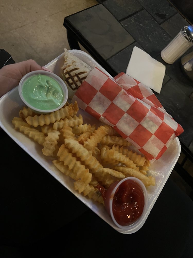 Ground chickpeas, onion, parsley, garlic, a touch of our spieces fried to order wrap in a pita served with hummus lettuce tomato turnip pickles and tahini sauce.